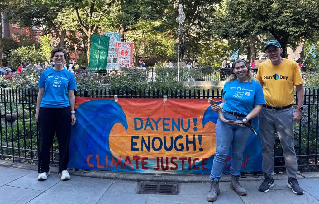At Sun Day in Manhattan in September 2025: Abby Breslow, Dayenu New York Organizer; Rocky Stern; and Bill McKibben