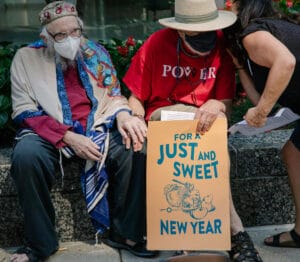 Second, for a few years there was a field-building initiative for the Jewish environmental movement that brought together the leaders of about 15 different organizations, including the Shalom Center. When the conversation at one of our early retreats turned to what collective action we could all take together, Arthur immediately suggested that we go to DC and chain ourselves to the White House to protest the continued support of fossil fuels. Other organizational leaders in the room responded, “Uh, I need to check with my board,” or, “I wouldn’t want to alienate our constituents with something so political.” Arthur, the oldest person in the room, was also clearly the most radical. In fact, I recently learned, he was arrested more than two dozen times for his activism.