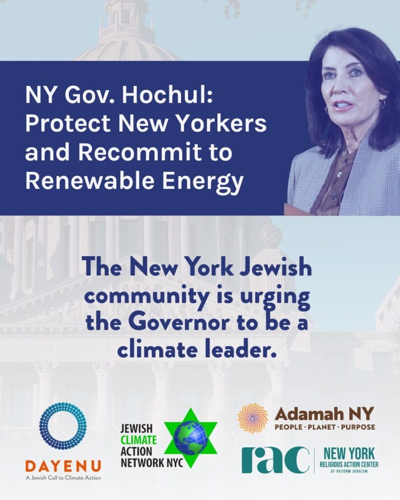 More than 1,100 NY Jews from all denominations across the state signed onto a letter urging the Governor to invest in renewable energy solutions while resisting pressure from the White House and the fossil fuel industry to invest in dirty, expensive, and dangerous fossil fuels.